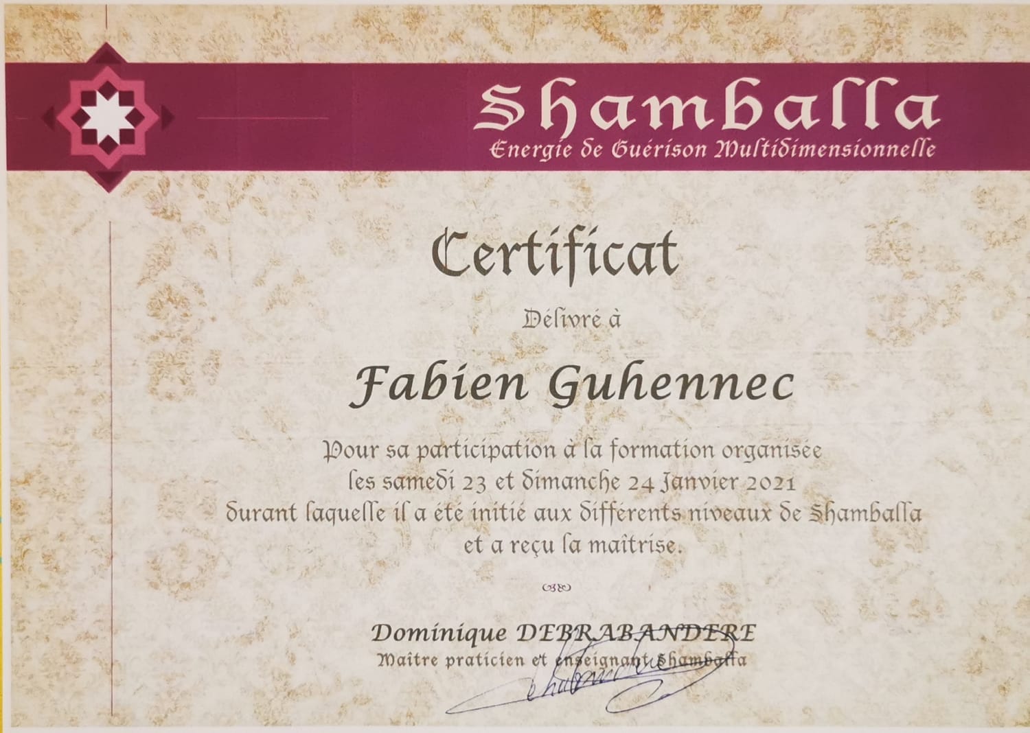 Formé aux énergie de guérison multidimensionnelle Shambala.